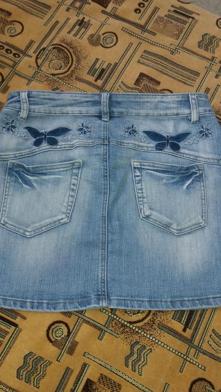 Юбка джинсовая средней длины и плотности.замер на фото