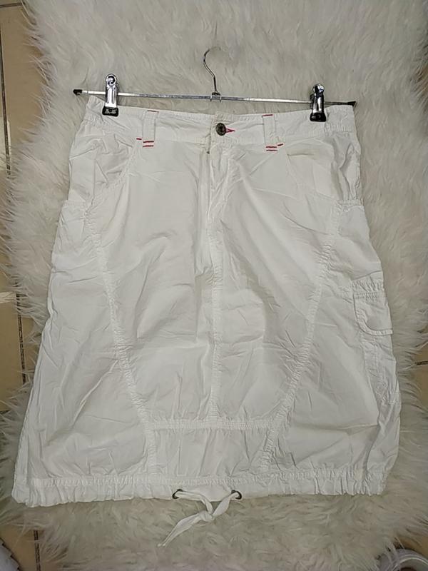 стильная,белоснежная юбка,средней длины с карманами,указан 42размер,маломерит.ПОТ38ПОБ 48.5 Длина53