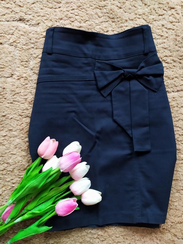 Темно синяя юбка с бантом