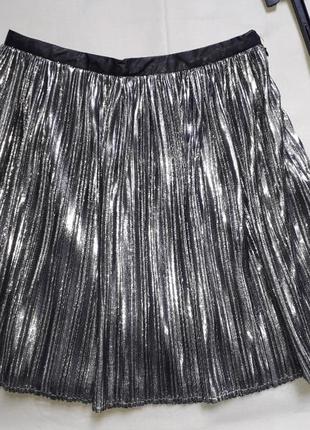 шикарная плисерованяя юпка в серебряном окрасе...на пояске кожаная вставка