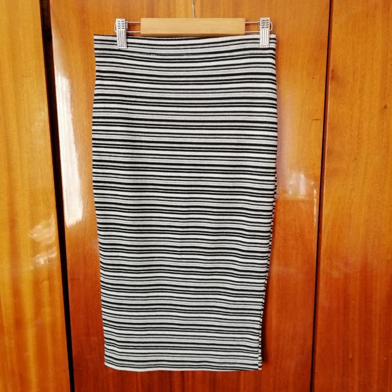 Юбка міді в полоску, тканина рубчик, добре тягнеться.