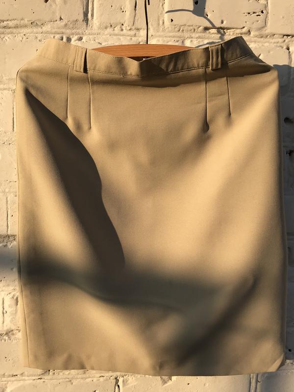 ПІТ 36, ПОБІДИ 48, низ 46, довжина 54, розріз 12. У поясі вставки-гумки, що збільшують об'єм талії на 3-4 см. На першому і останньому фото видно дефект, ледь помітну цятку на передній частині.