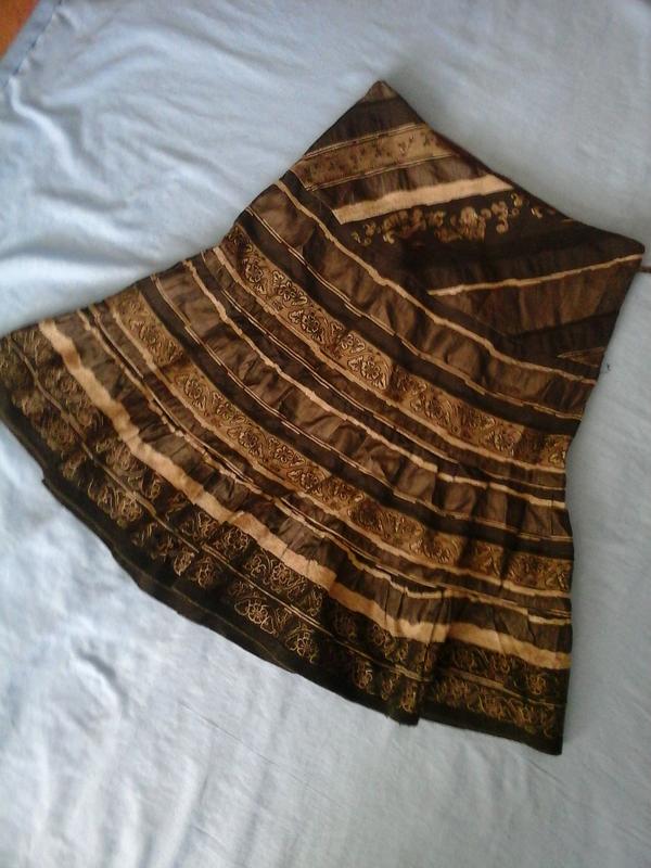 Юбка красивого оливково-зеленого цвета, немного трапецией, застегивается сбоку на замочек. На рост 1,60 до середины колена
