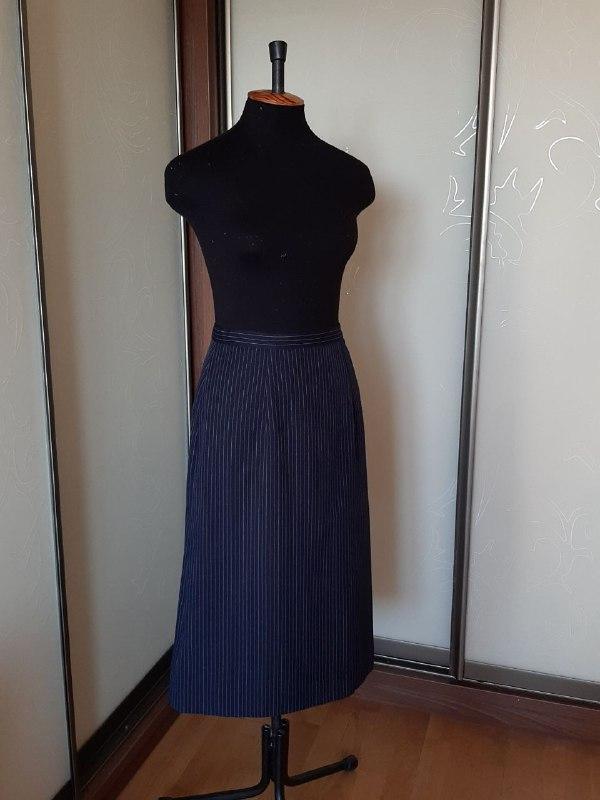 Юбка из моего гардероба. Юбка прямого силуэта, темно синего цвета в тонкую полоску. В составе ткани есть шерсть.