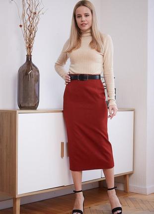 Юька-карандаш длины миди с разрезом сзади. Трендовый цвет "палочка корицы". Костюмная ткань (Италия). Можно отшить по вашим параметрам