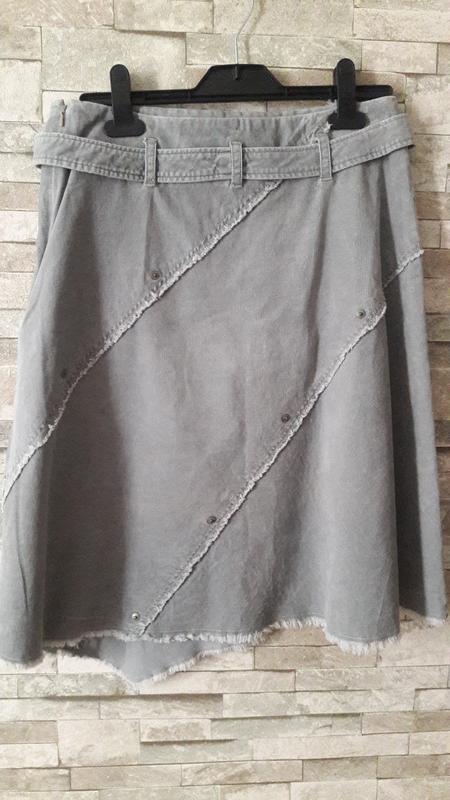Очень красивая юбочка,с актуально обработаным низом ,тонкий вильвет,с пояском.Замеры:пот-39см.,поб.-57см.,длинна-63см.,молния боковая.