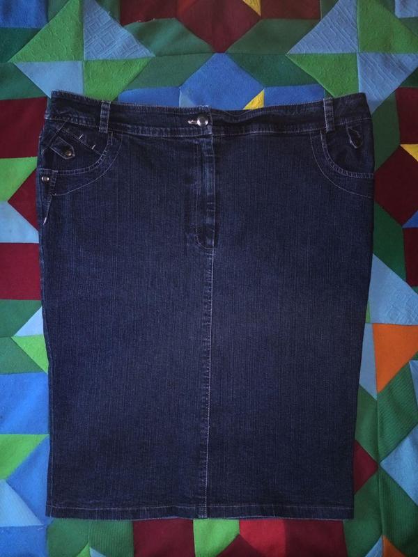 Джинсовая юбка - незаменимая вещь в весеннем гардеробе! Застежка молния + пуговица. Обхват бедер - 96 см. Длина изделия -- 57 см.