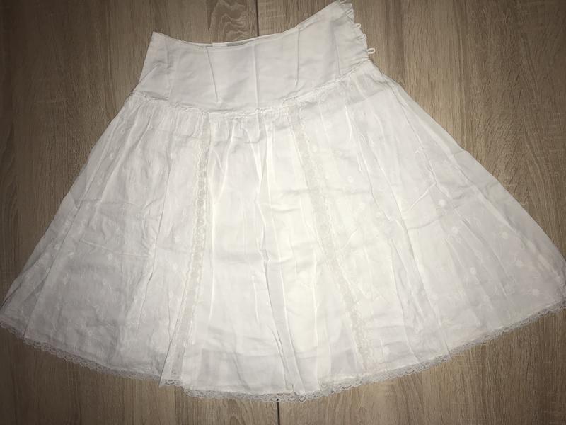 Белая юбка ниже колена. Приятная ткань. На пуговичках сбоку. Носила на размер 42. Возможен обмен.