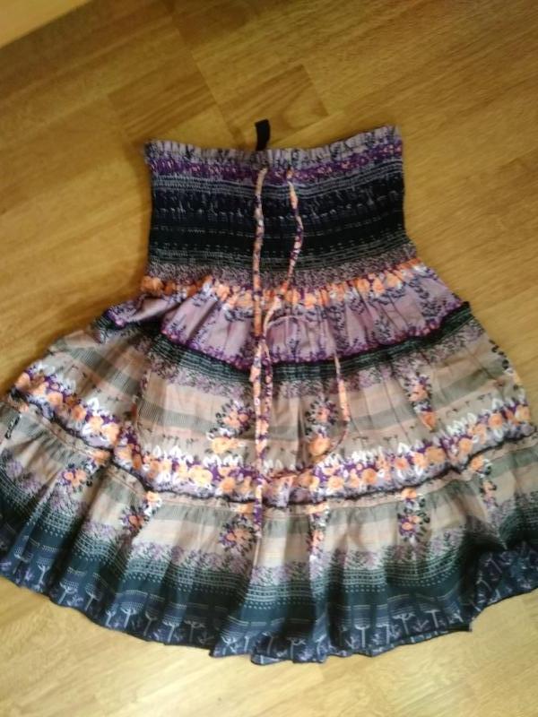 можно носить как топ. широкая часть сверху на резинке. тянется от 32 до 43.длина 52