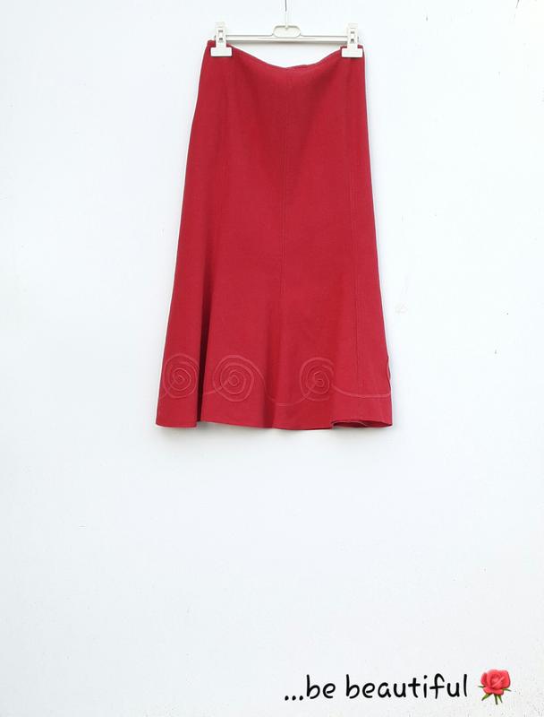 Очень классная юбка от M&Co. Красивый фасон 8-ми клинка. Невероятный алый цвет. Элегантная тасьма снизу. А самое главное -натуральная и так нами любимая ткань лён. Ткань достаточно плотная и не просвечивает. Состояние идеальное. Без дефектов. Размер указан 14