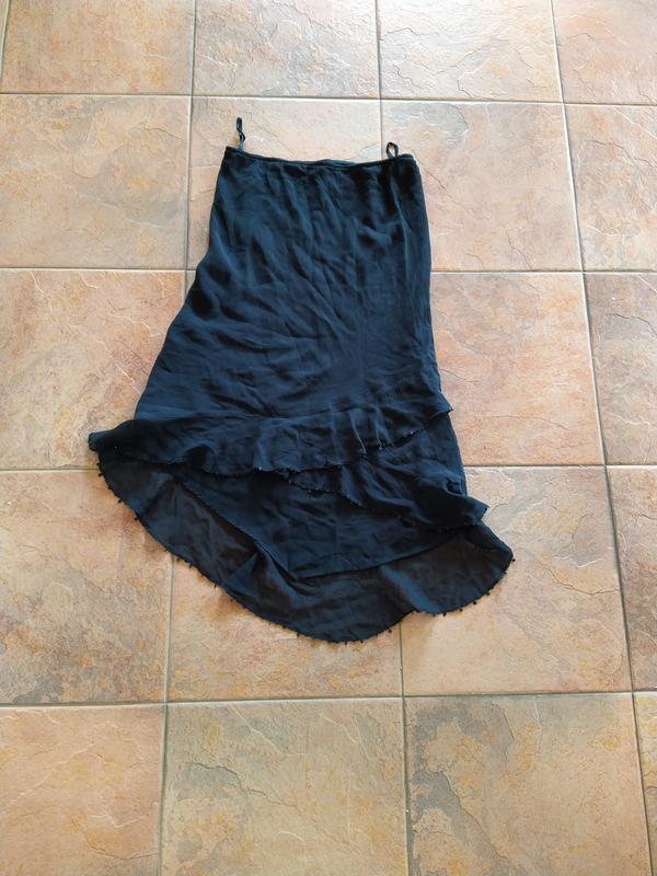 Юбка из натурального шелка, куплена на итальянской фабрике Blunauta, длина миди, сзади длиннее (хвостик), волан расшит бисером по низу, на резинке, очень лёгкая - струится, слегка тянется