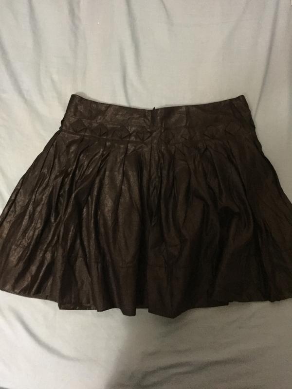 Юбка на молнии, низкая посадка , есть подкладка , на поясе декор ромбики, материал чёрный блестящий, состояние идеальное, замеры по желанию.