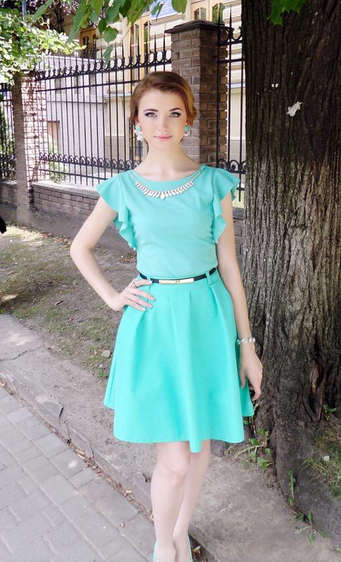 Яскрава юбка бірюзового кольору з чорним ремінцем в ідеальному стані. Розмір хс-с. Чудова якість, з підкладом. Блузка теж в наявності. Комплектом зроблю знижку і сережки в подарунок.