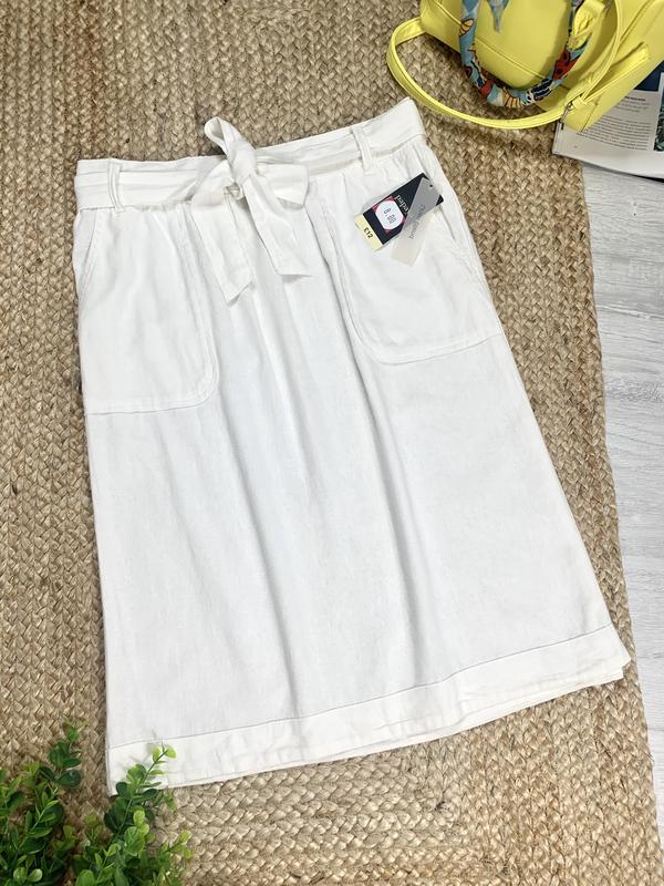 Стильная юбка лен+вискоза Новая , с биркой Размер 12uk ПОТ 39 см, сзади на резинке тянется до 45 см ПОБ 51 см Длина 64 см Дефектов нет
