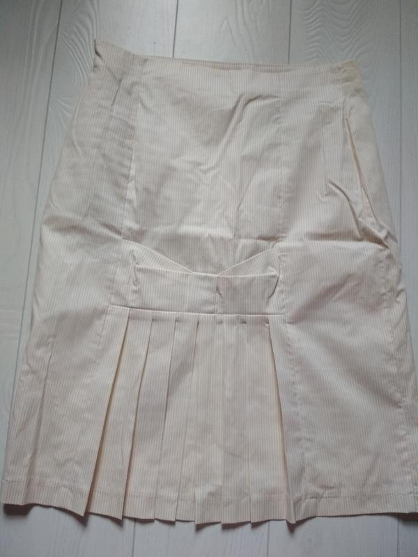 юбка белая в нежно-желтую полоску.бант и складки из заде. длина-61 см.идеальная.на подкладке.