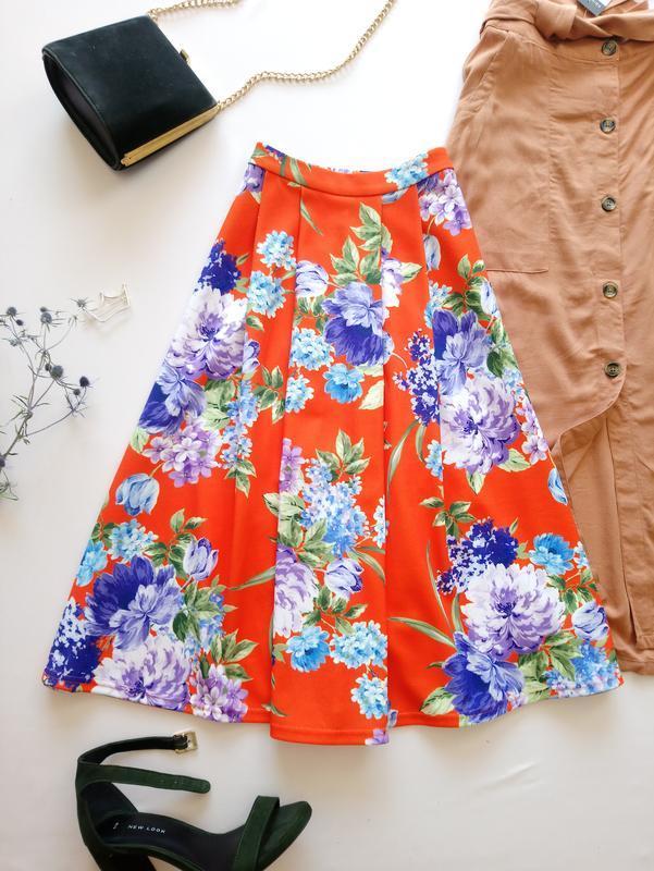 Спідниця міді у квітковий принт, юбка миди в цветочный принт primark, xs/s