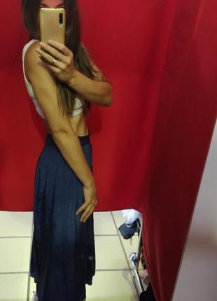Темносиній колір в дрібний горошок Розмір ХС На підкладці На бирці 100%віскоза,талія 32см