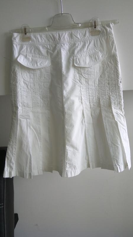 Літня спідниця міді в складки, на підкладці, середня посадка. Заміри в поясі 74, в бедрах 94, довжина 57.