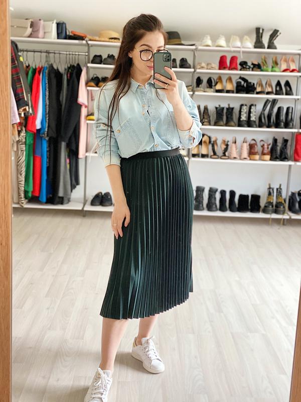 Миди юбка плиссе Цвет темно зеленый, идет с небольшим переливом блеском Новая Размер S, M, L 620 грн Нова ціна 345 грн S: Длина: 71 см ПОТ: 34 см, резинка M: Длина: 71 см ПОТ: 33 см, резинка L: Длина: 74 см ПОТ: 37 см, резинка