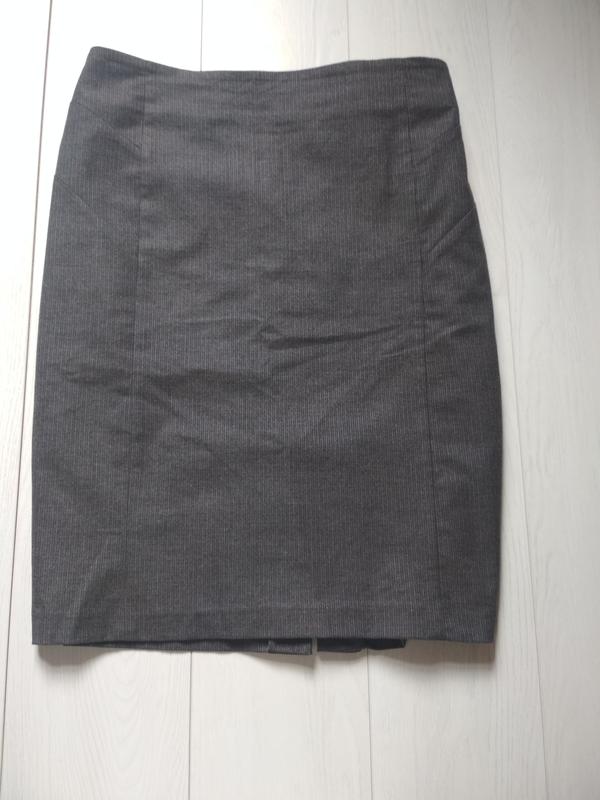 очень интересная юбка серая в мелкую елочку- полосочку.длинна 59 см пот 44 поб 51 см.с заде красивая шлица.