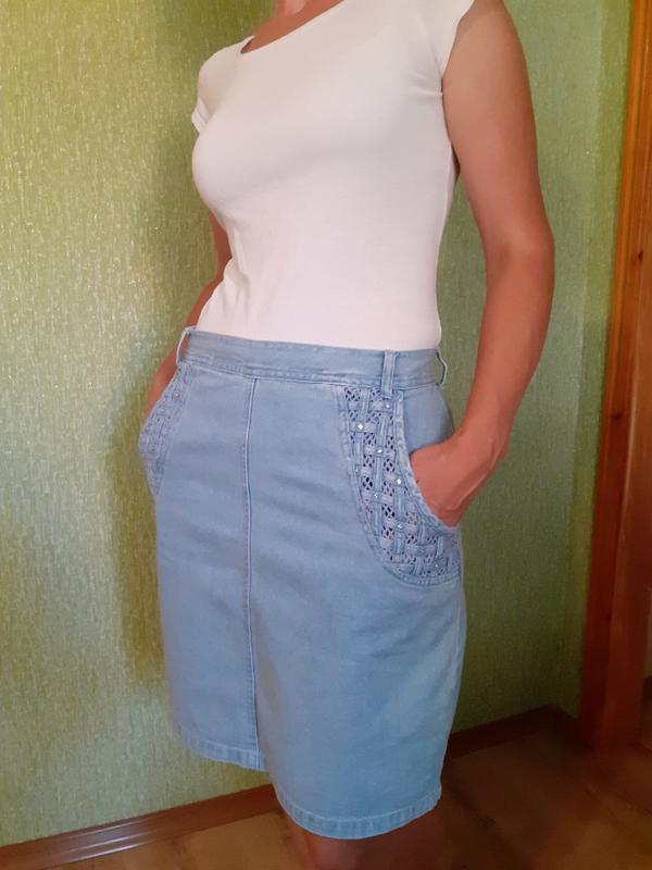 Красивая джинсовая юбка, джинс плотный, не стрейчевый длина-51 пот-38 поб-52