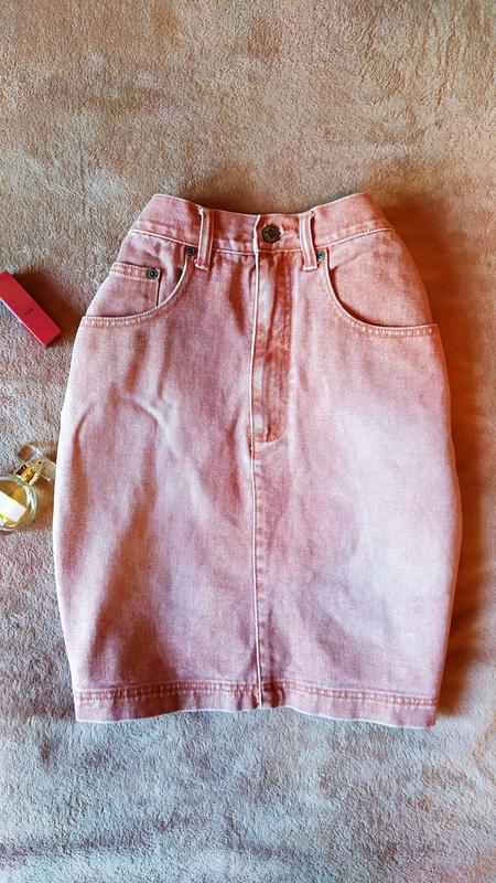 Джинсовая юбка миди пыльно розового цвета высокая талия line 100% котон 10 размер длина 51 см пот 33-35 см поб 50 см