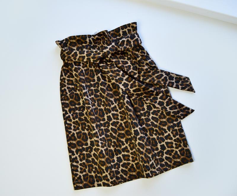 Атласная юбка в леопардовый анималистичный принт Плотная юбка длиной до колена с высокой талией на широкой резинке и съемным поясом. Есть боковые карманы. Новое, с биркой Размер в наличии 8,подойдет и на 10 пот 32,+тянется до 44 поб 50 длина 56
