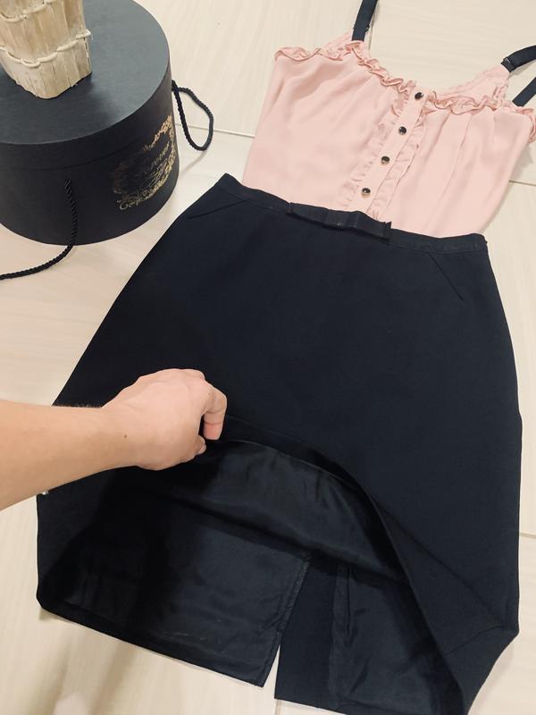 Шикарная юбка, с подкладкой,сбоку на потайной молнии и кнопке. Безупречное качество пошива и ткани. По фигуре оочень красиво ложится, за счет выточек, размер указан 42, идет на с/м. Замеры: длина 49, ПО по поясу 35/36, поб 46, хорошо тянется Состав: 95% шерсть, вискоза, полиамид