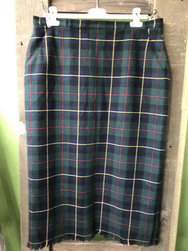 Отличная тёплая юбка длиной миди от бренда LA STRADA. Отличный соста:шерсть-45/, полиэстер-55/. Очень красивая клетка , подол юбки заканчивается бахромой , 5 см. Прямой крой, карманов нет{есть имммитация карманов}, . Поясок юбки имеет сзади две завязки, а спереди их нет, наверное утеряны. . {См.фото}. Но это никак не уменьшает красотки качества юбки. Размер по бирке -44 .Замеры:длина-82 см, ПОТ -43 см, ПОБ -54 см. Юбка очень красивая!Очень!