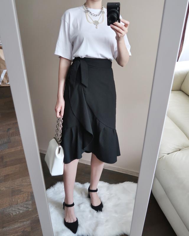 Міді-спідниця на запах / спідниця з воланом / чорна спідниця в смужку / міді спідниця zara