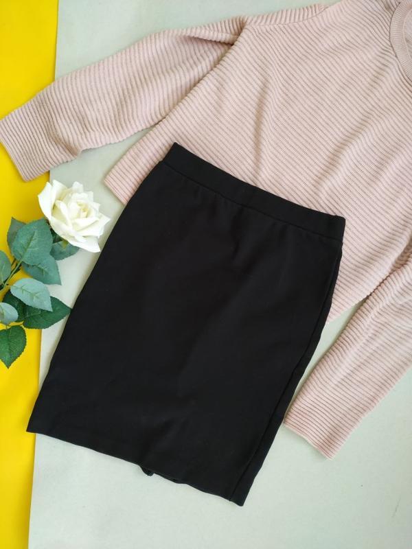 Чёрная юбка карандаш,талия на резинке,плотная эластичная ткань, хорошо тянется,плотно облегает фигуру, сзади шлица р. XXS,XS Длина 50 ПОТ 31-35 ПОБ 38-43 Состояние идеальное без нюансов, практически новая