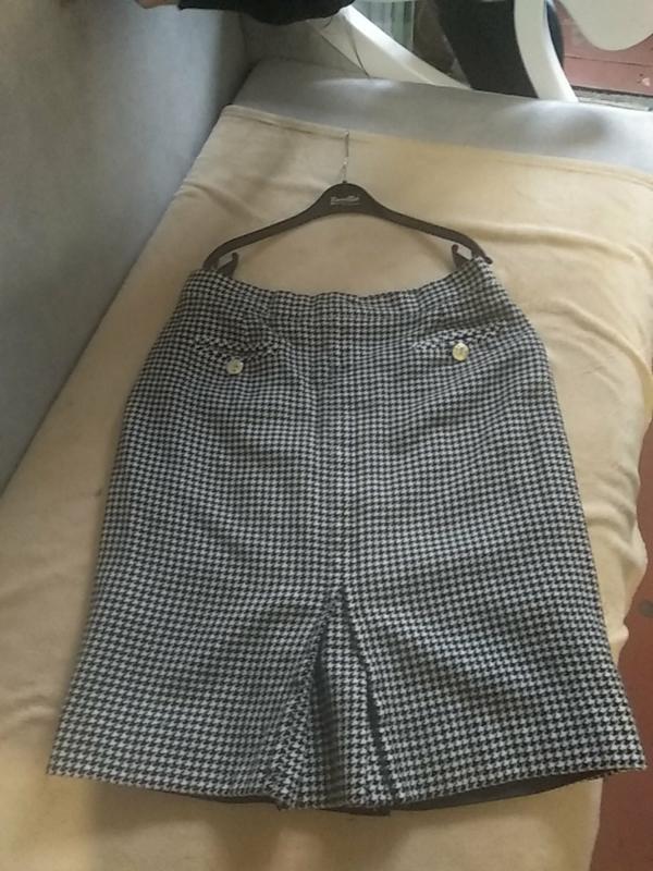 Юбка теплая в хорошем состоянии.размер52.естьнедостаток на последнем фото,состав ткани шерсть,пот47,поб по подкладке 55,высота 62.