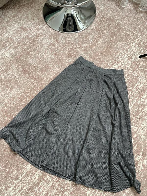 Стильна спідниця в рубчик , довжина - нижче коліна , розкльошена , стан нової , одягалася пару раз , є маленький нюанс зі змійкою, але при носінні не помітний
