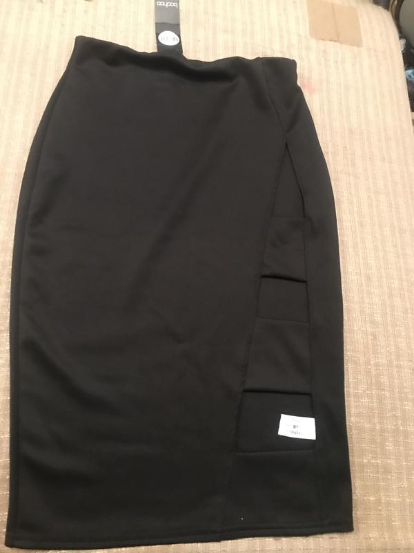 Юбка карандаш,сбоку эффектные вырезы,на теле смотришься супер,замеры пояс 36см,бёдра 45 см,в самом низу 40,длина 67.5 см