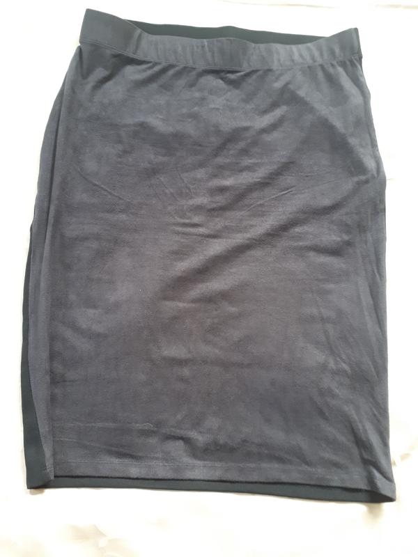 Классная комбинированная юбка,хорошо тянется,с одной стороны серый цвет,ткань под ,,замш,,сзади черный цвет,ткань вискоза,пояс на резинке,длинна 64см,пояс 45см,бедра 52см,новая,сток,без этикетки