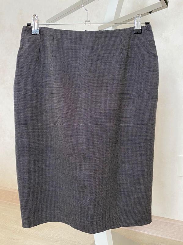 Базовая классическая юбка-карандаш. Сзади шлица. Талия - 37,5 см, бёдра - 47,5 см, длина - 56 см, и ещё тянется. Состав: шерсть - 70%, вискоза - 28%, лайкра - 2%
