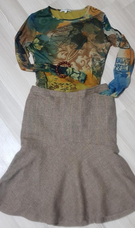 Красивая офисная юбка. Длина 57, ПОТ 37,ПОБ 44,45. Юбка на подкладке. В составе 30 % шерсти.