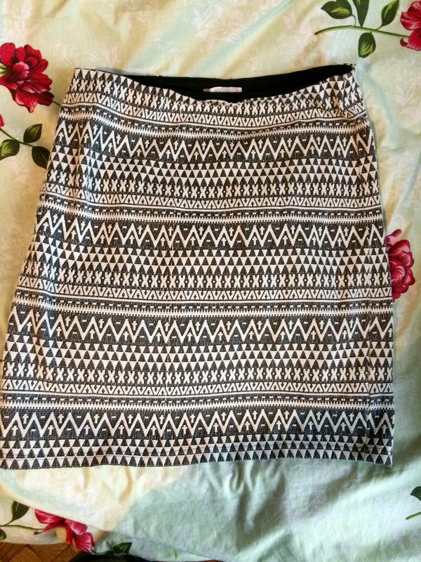 Спідничка House з цікавим візерунком. Довжина 50см, в поясі 38, плюс тягнеться. Спідничка до колін по фігурі, гарно виглядатиме з однотонним верхом.
