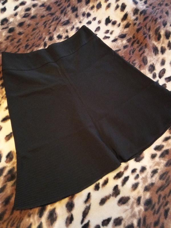 Юбка черная в серую полоску, разклешенная книзу ЕLESTA, с широким поясом, сзади молния,на подкладке,шерсть размер 48 ,XL полуобхват талии 40,5 см полуобхват бедер 52-53 см длина 56 см (в т.ч.пояс 7,5 cм) Оплата на карту Приватбанка.
