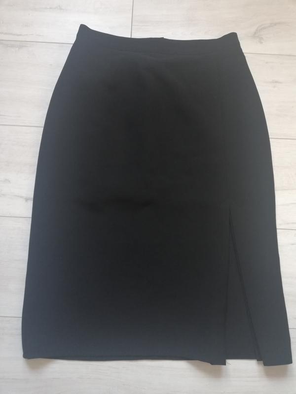 Юбка миди с разрезом впереди. Застегивается на змейку и крючок. Длина - 67 см Пот- 36 см Поб- 49 см Разрез - 30см