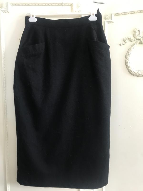 Стильная тёплая юбка длиной миди. Отличный фасон-узкая, прямая, спереди два кармана, сзади разрез, красиво оформленный рядом мелких чёрных пуговичек, которые можно расстегнуть на любую высоту. Цвет-чёрный, на подкладк. Состав:шерсть -80/, полиэстер -20/. Размер по бирке -14, надо ориентироваться по замерам:длина-82 см, ПОТ- 37 см, ПОБ-51 см. Очень стильная!