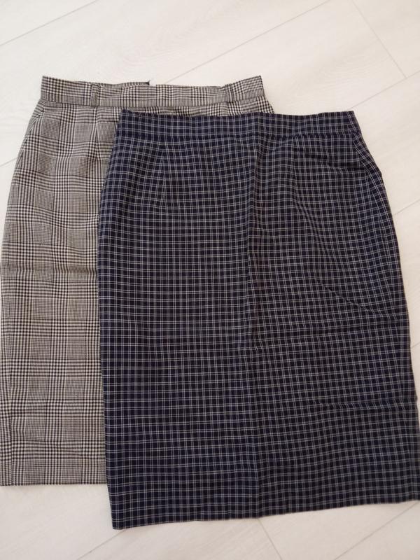 Темно синя спідниця висота 63 см, талія 39півобхват см, бедра 51. Сіра в клітинку талія 36півобхват см, бедра 49см, висота 63 см.Кожна по 95 грн