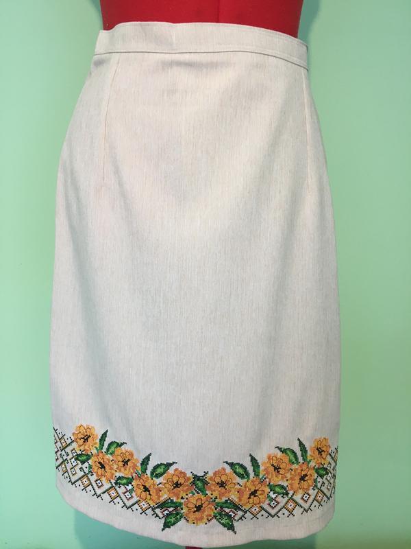 Юбка вышита на костюмной ткани ( лён с добавлением вискозы), застегивается на липучку, размеры на фото, машинная вышивка
