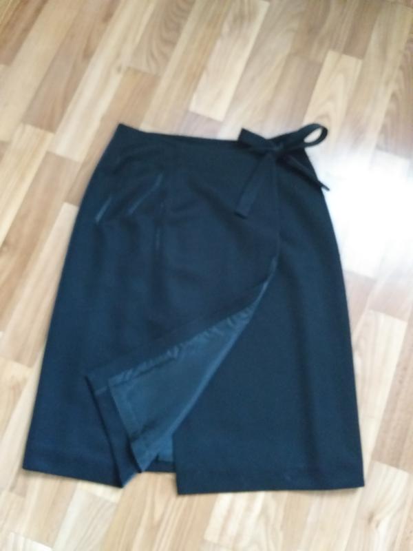 Юбка-карандаш на запах (можно регулировать объем талии), длина 57 см., на подкладе. Цвет черный с металлическим отливом, выглядит очень красиво, одеваласт 1-2 раза) 55 %- полиэстр, 45% шерсть. На размер S. Юбка от костюма, есть еще жакет.