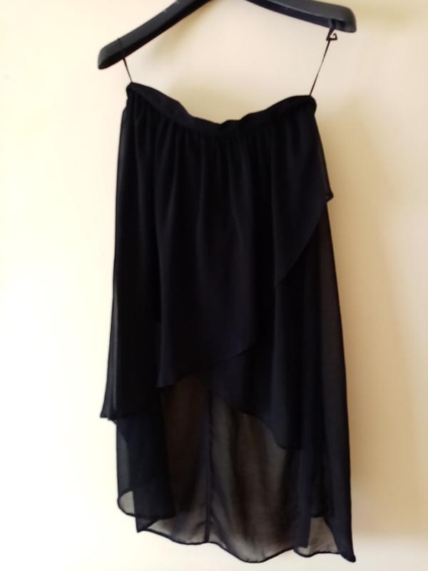 Поясок, заді замочок, покрой сходинками, спереді нижче, заді нижче колін. Знизу підюпник чорний. Довжина перед 37см Заді 77см