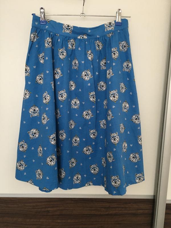 Легенька спідничка з дуже симпатичним принтом, тканина 97% котон 3еластан,в ідеальному стані, збоку замочок, розмір вказано uk12, приблизно M/L орієнтуйтесь по замірах. ПОТ 37, довжина 61см.