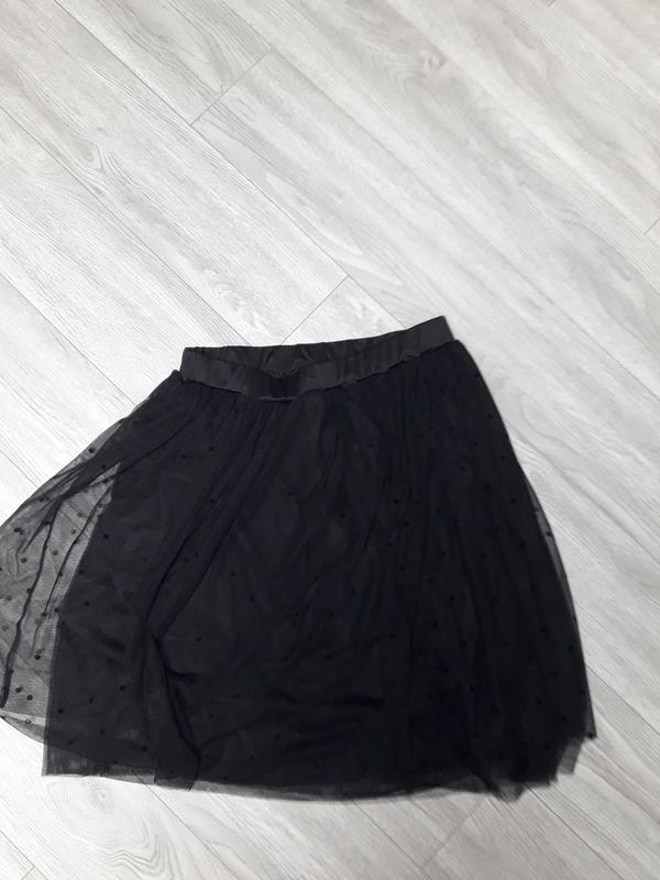 Чорна спідниця-міді від Reserved, на резинці, багато шарова сітка в горохи + підкладка. Двічі одягнена. Розмір 44 (eur), 16 (uk) Довжина спідниці 63 см