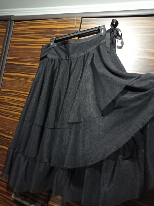 спідниця на котоновій основні. поверх нашиті три рюші з поліестеру.ПОТ 42 см, довжина 74 см. замок- блискавка збоку