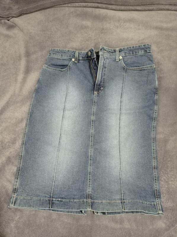 джинсова спідниця.. довжина 60 см, ПОТ 40 см, ПОБ 49 см. 98% котон, 2% еластан