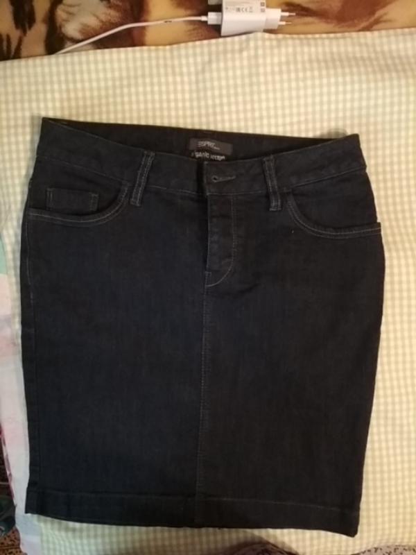 Джинсова спідниця темно синього кольору,форма вузька, ззаду зі шліцом.Заміри-поталии-38,стегна-44,довжина-45.